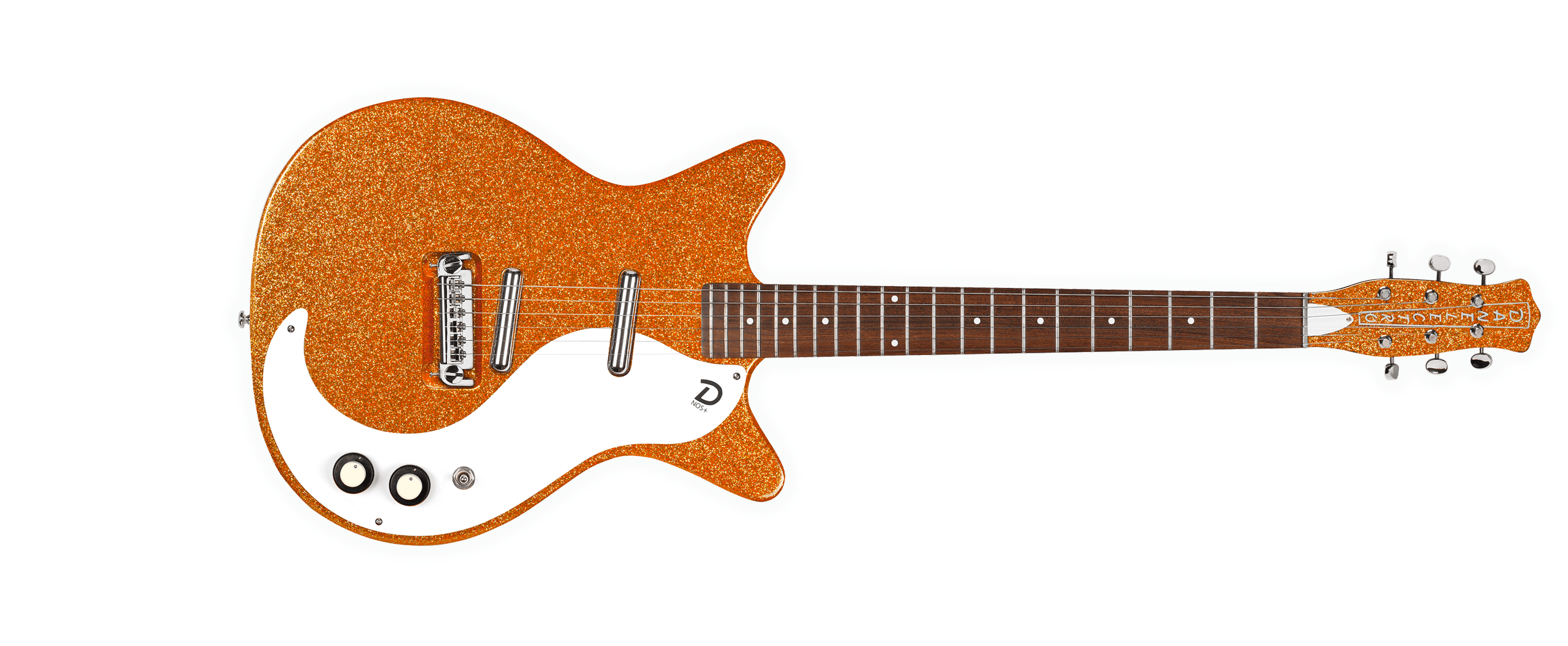 ’59M™ NOS+ Metalflake™ Danelectro®’s classic flagship model, spiffed up for its 60th anniversary. NOS+ pickups, adjustable die cast bridge, stacked tone and volume controls.