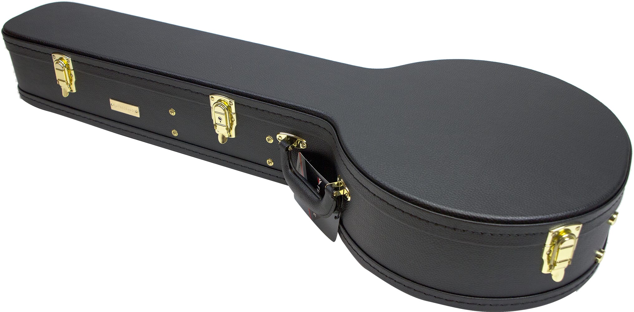 Woodcase av høy kvalitet som gir optimal beskyttelse for instrumentet ditt kombinert med et klassisk utseende. Yttermateriale i slitesterk svart tolex med fin struktur og beslag i gullfarget kraftig metall. Kassen kan låses med nøkkel. Metallføtter sitter velplasert på bunnen og på undersiden av etuiet. Innsiden er polstret og kledd med mørkerød fløyel. Ekstra polstring finns i lokket over kropp og hals. Tilbehørsrommet er av kraftig tre og er skrudd fast i etuiet for best mulig stabilitet. Det komfortable håndtaket vil glede deg hver gang du bærer instrumentet ditt i denne kofferten. Innermål 101x41x13cm