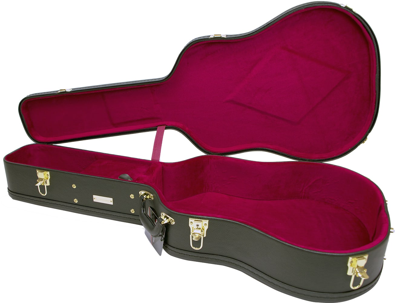 Woodcase av høy kvalitet som gir optimal beskyttelse for instrumentet ditt kombinert med et klassisk utseende. Yttermateriale i slitesterk svart tolex med fin struktur og beslag i gullfarget kraftig metall. Kassen kan låses med nøkkel. Metallføtter sitter velplasert på bunnen og på undersiden av etuiet. Innsiden er polstret og kledd med mørkerød fløyel. Ekstra polstring finns i lokket over kropp og hals. Tilbehørsrommet er av kraftig tre og er skrudd fast i etuiet for best mulig stabilitet. Det komfortable håndtaket vil glede deg hver gang du bærer instrumentet ditt i denne kassen. Innvendige mål 105x41x15cm