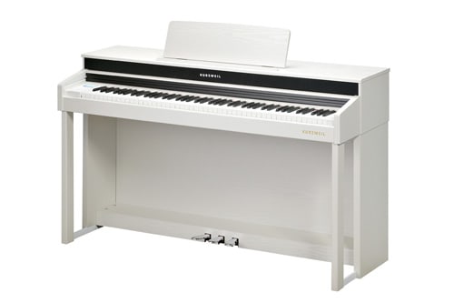 2 Gigabytes of Sounds! Draw from a palette of 88 inspiring factory presets. Hear our new High Definition Japanese Grand (optimized especially for the CUP310/320) and German D Grand, featuring "KSR" - Kurzweil String Resonance and half-damper functionality. Also included are a wide selection of tailored sounds from the Forte®SE such as Harpsichord, Clav, Classic EPs and Celeste. Download the Manual for a complete list. Patented FlashPlay® Technology Flash-Play® powers the CUP310/320 with 2 GB of on-board sample content with zero-loading time, loads of powerful DSP and ultrafast performance. Key Choices Choose between a fully-weighted graded hammer-action keyboard (CUP310) or a fully-weighted graded hammer-action with authentic wooden keys (CUP320) for true piano performance. Both mechanisms feature a 3-point velocity sensor. Modern Cabinet Design Spinet-stye cabinet available in satin rosewood or white finishes, featuring a built-in music stand, slide-out fallboard and powered by a dual 25 Watt 4-speaker, stereo sound system. MIDI Song Recorder An easy-to-use single track song recorder with punch-in facility, allows you to record, perfect and store up to 10 of your own keyboard performances. Rhythm Accompaniment Patterns & Metronome Need a beat? Enjoy 69 pre-recorded drum tracks in a variety of styles as well as a traditional metronome to play along with. Simple and Intuitive Controls A simple and clear control panel with monochrome LCD permits easy access to all system functions, including sound/rhythm/song selection, transpose as well as split/layer/dual performance modes. Built-In Pedals Sustain (with half damper effect), Sostenuto and Soft Pedals standard.