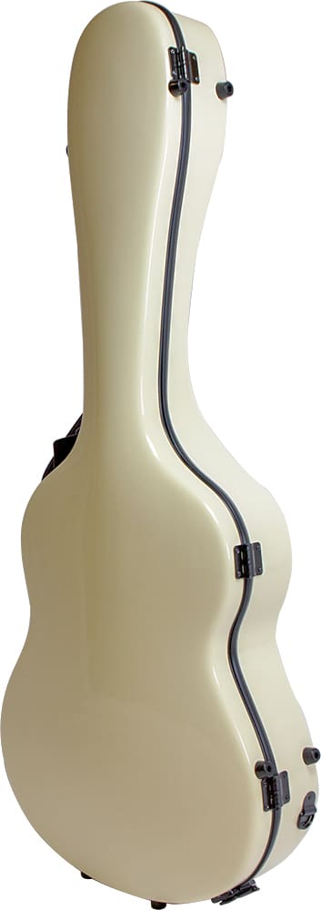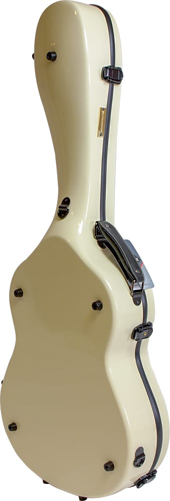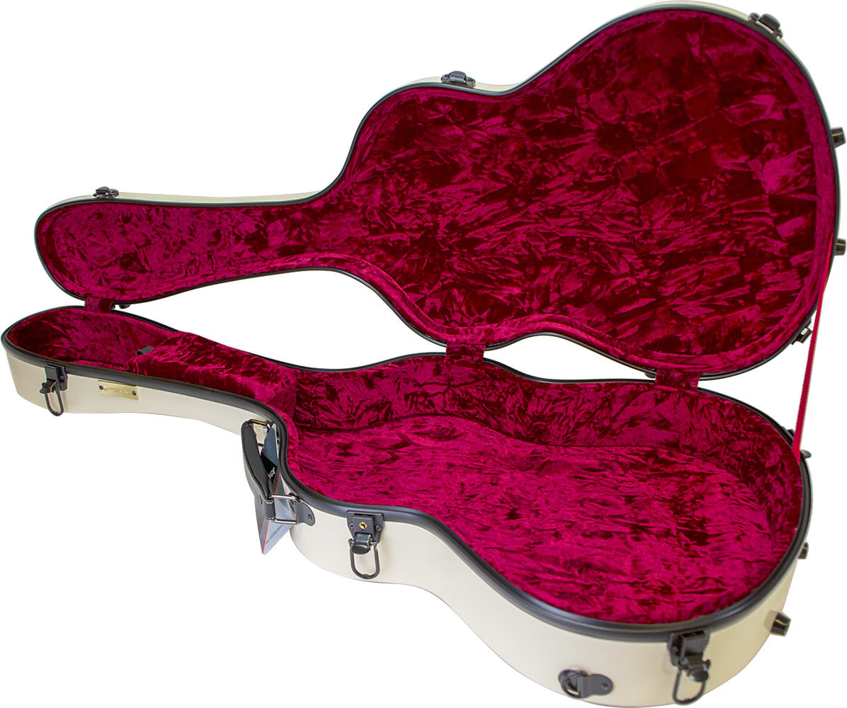* Superstrong hardcase for klassisk gitar * Meget sterk * Ryggsekksreimer * Innvendig mål 102x38,5x11cm * Vekt 3,9 kg Glassfiber gitarkasse som gir utmerket beskyttelse og har et elegant støpt utseende. Høyglans eksteriør og beslag i matt sort. Etuiet har svært komfortable polstrede lærlignende håndtak og sterke ryggsekksreimer som festes til solide metallringer på baksiden. Gummiføttene er velplassert på baksiden, bunnen og på undersiden. Innsiden av etuiet er polstret og foret med rød fløyel. Det er ekstra polstring på utsatte områder og det er oppbevaringsplass under nakkestøtten som holdes lukket med borrelås. En av låsene kan låses med nøkkel.