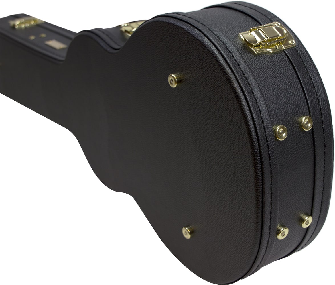 Woodcase av høy kvalitet som gir optimal beskyttelse for instrumentet ditt kombinert med et klassisk utseende. Yttermateriale i slitesterk svart tolex med fin struktur og beslag i gullfarget kraftig metall. Kassen kan låses med nøkkel. Metallføtter sitter velplasert på bunnen og på undersiden av etuiet. Innsiden er polstret og kledd med mørkerød fløyel. Ekstra polstring finns i lokket over kropp og hals. Tilbehørsrommet er av kraftig tre og er skrudd fast i etuiet for best mulig stabilitet. Det komfortable håndtaket vil glede deg hver gang du bærer instrumentet ditt i denne kassen. Innvendige mål 101x33x11,5cm