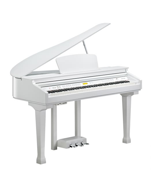 The KAG100 combines an elegant compact grand piano design with exquisite polished ebony cabinet and a modern leg design. Features - Keyboard: 88-Note, fully-weighted action with adjustable touch sensitive keys - Keyboard Sensitivity: 3 selectable dynamic response levels + 1 fixed - Display: 2x16 alphanumeric LCD display - Polyphony: 64 voice - Preset Programs: 200 - User Presets: 20 recallable panel memories - Demo Songs: 71 - Learning Songs: 55 - Metronome: Yes - General MIDI: No - Splits/Layers: Quick Split/Layer, easy access with adjustable relative volume - Transpose: Full transposition to any key, +/- one octave - Tune: +/- 1 semitone - Effects: 8 reverb types (plus level); 8 chorus types (plus level); Treble/Bass EQ - Auto-Accompaniment: 100 styles plus 1 user - Recorder/Sequencer: 2-Track - Sound System: 4-speaker, 20W+15W, stereo - Audio Outs: Stereo left/right RCA line outs (for connecting to external amplification) - Audio Ins: Stereo left/right RCA line ins (for connecting external sound sources) - Headphones: (2) 1/4" stereo headphone outs - MIDI I/O: MIDI Out - USB: (2) ports - USB Type A (for Storage); USB Type B (provides both MIDI and audio) - Bluetooth: Yes (incl. blue tooth receiver) - Pedals: (3) built-in switch-type: sustain, sostenuto, soft - Finish: Ebony Polish - Bench: Matching bench included