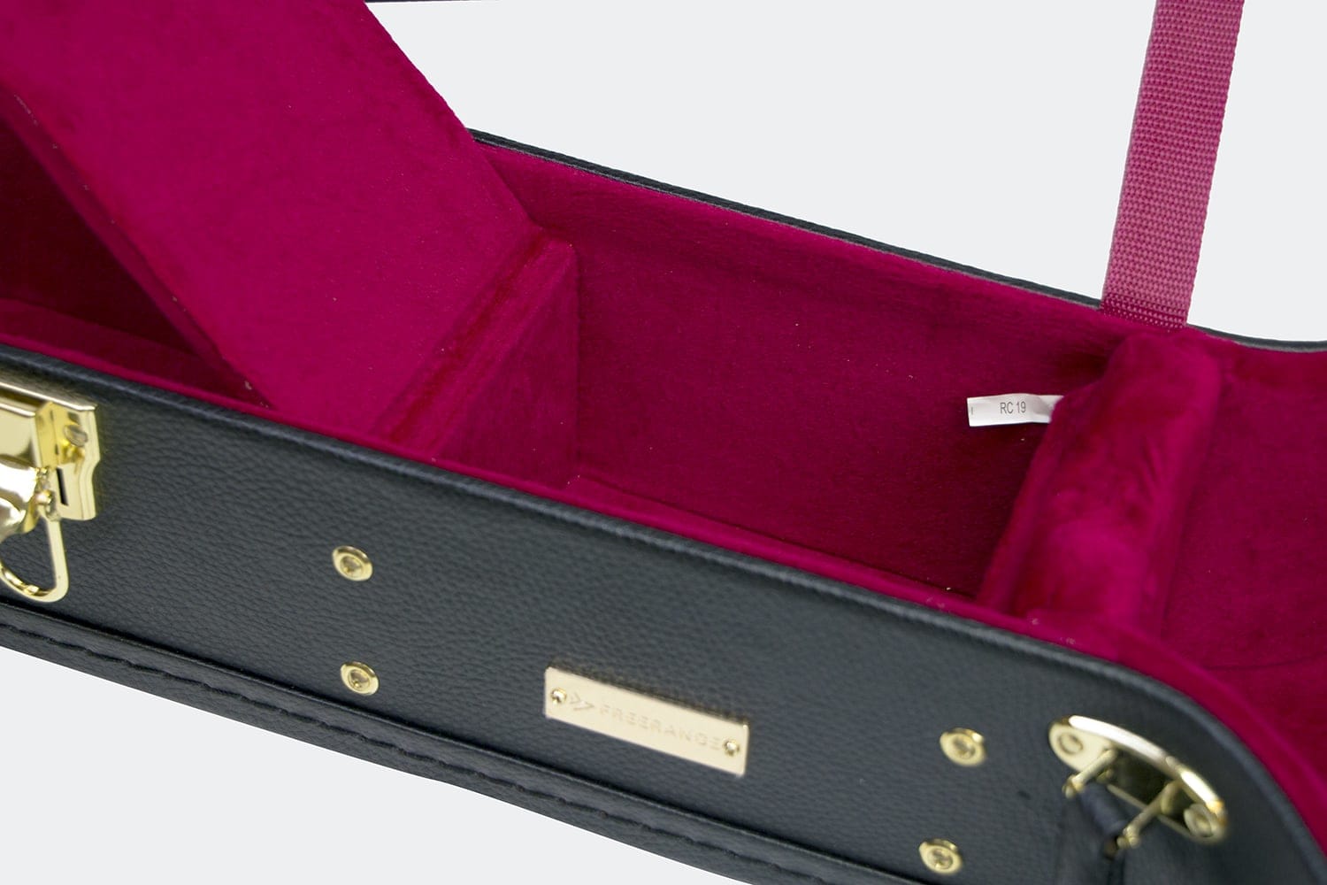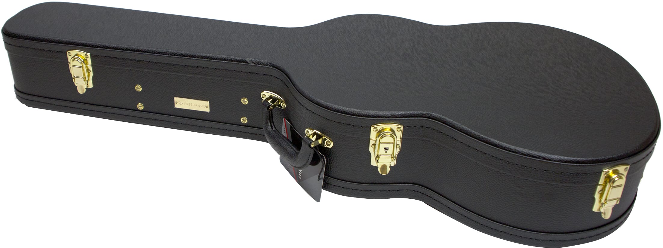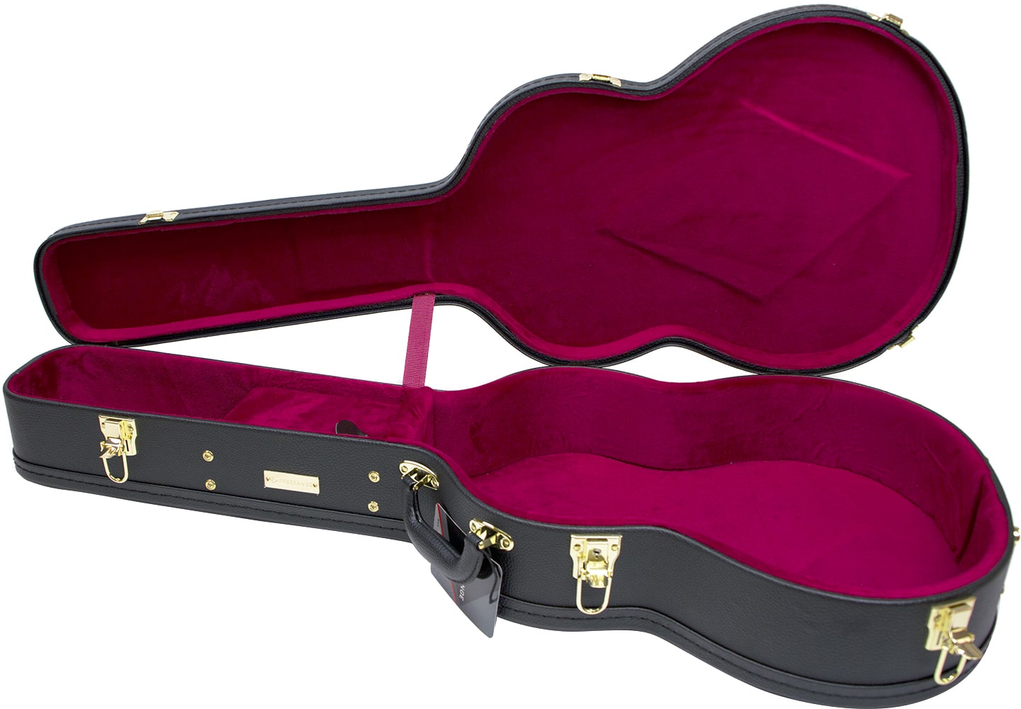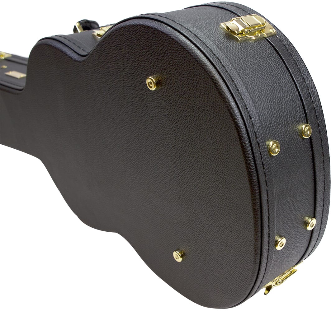 Woodcase av høy kvalitet som gir optimal beskyttelse for instrumentet ditt kombinert med et klassisk utseende. Yttermateriale i slitesterk svart tolex med fin struktur og beslag i gullfarget kraftig metall. Kassen kan låses med nøkkel. Metallføtter sitter velplasert på bunnen og på undersiden av etuiet. Innsiden er polstret og kledd med mørkerød fløyel. Ekstra polstring finns i lokket over kropp og hals. Tilbehørsrommet er av kraftig tre og er skrudd fast i etuiet for best mulig stabilitet. Det komfortable håndtaket vil glede deg hver gang du bærer instrumentet ditt i denne kassen. Innvendige mål 103x37x13cm