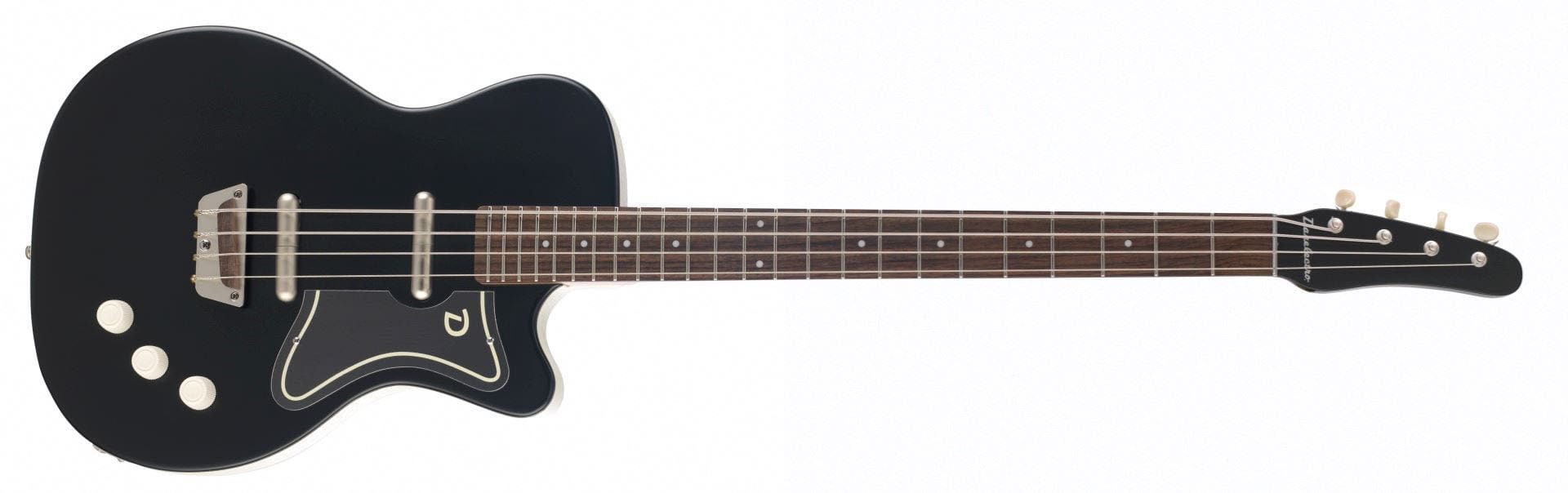 - Single-cutaway body style - "Dolphin" headstock - 30" short-scale neck - 24 frets - Dual lipstick pickups - 2 volume and 1 tone controls - Nickel hardware - Wraparound bridge - Adjustable truss rod - Clear pickguard