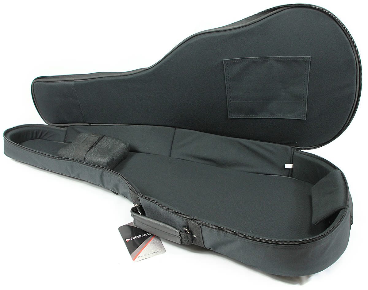 Klassisk / Spansk gitarr gigbag med 15mm Epe stoppning. Yttermaterial av laminerat, kraftigt Codura tyg som är slitstarkt och med mycket god vattentålighet. Stoppning av högdensitets Epe material som ger oerhört bra skydd även i tunna lager, används bland annat inom flygindustrin. Utmärkt kvalitet på arbete och detaljer. Silver reflex linje ger extra säkerhet under den mörka årstiden. Innermått 103cm x 40cm x 10cm.