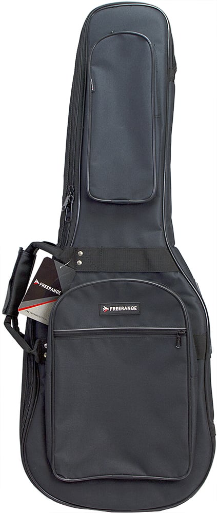 Dubbel Elgitarrr gigbag med 15mm Epe stoppning. Yttermaterial av laminerat, kraftigt Codura tyg som är slitstarkt och med mycket god vattentålighet. Stoppning av högdensitets Epe material som ger oerhört bra skydd även i tunna lager, används bland annat inom flygindustrin. Utmärkt kvalitet på arbete och detaljer. Silver reflex linje ger extra säkerhet under den mörka årstiden. Innermått (2x) 102cm x 35cm x 6cm.