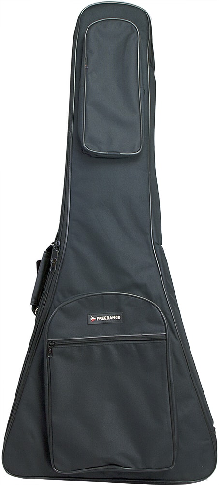 Flying V-style gigbag med 15mm Epe stoppning. Yttermaterial av laminerat, kraftigt Codura tyg som är slitstarkt och med mycket god vattentålighet. Stoppning av högdensitets Epe material som ger oerhört bra skydd även i tunna lager, används bland annat inom flygindustrin. Utmärkt kvalitet på arbete och detaljer. Silver reflex linje ger extra säkerhet under den mörka årstiden. Innermått 112cm x 46cm x 6cm.