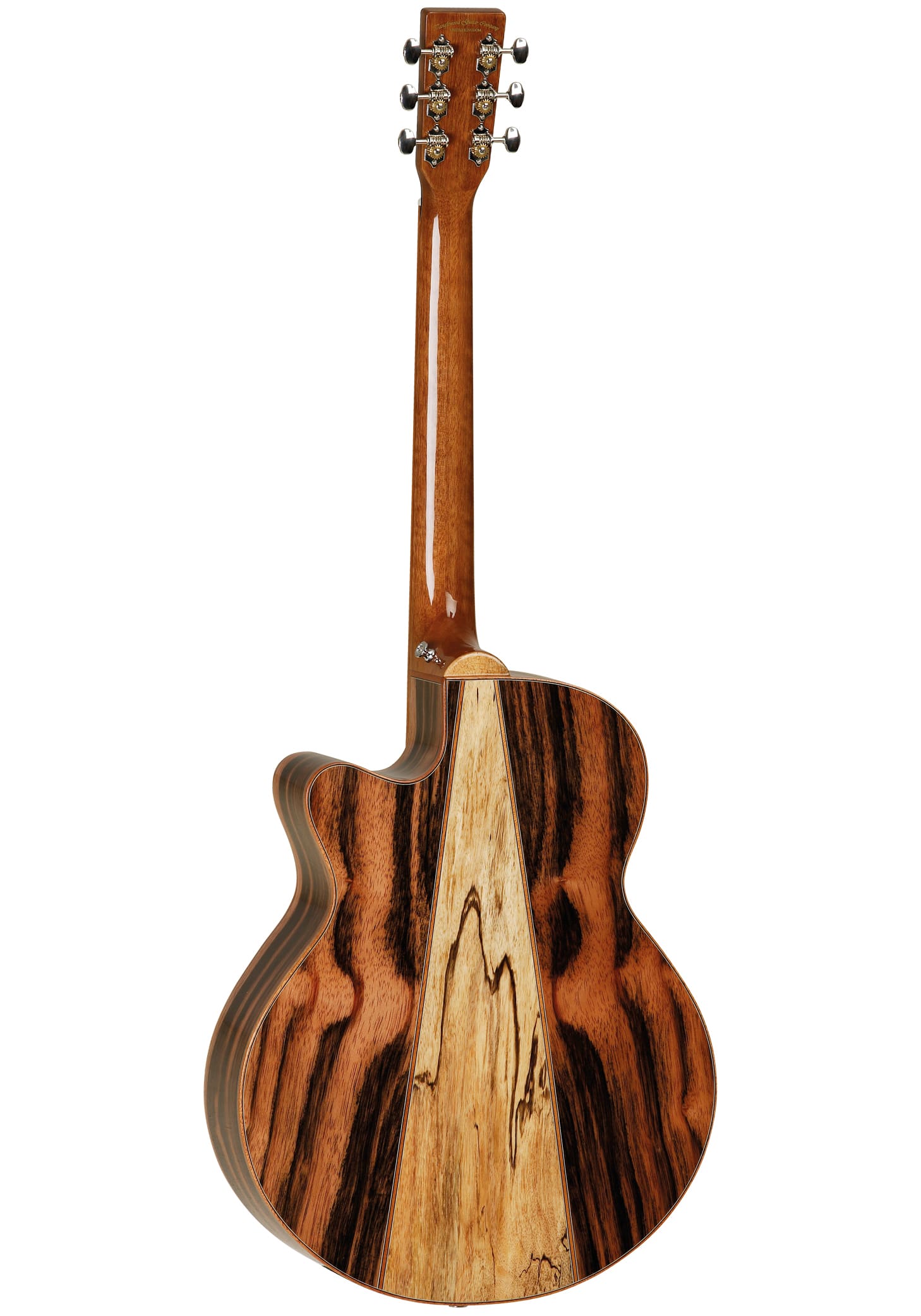 What truly sets this guitar apart is its stunning three-piece back, crafted from a combination of Amara and Spalt Mango. Beyond their visually captivating grain patterns, these tonewoods contribute to the guitar’s unique tonal character. Amara provides warmth and balance, while Spalt Mango adds a touch of complexity and depth, resulting in a tone that’s both articulate and rich, making it an ideal choice for expressive, nuanced playing.