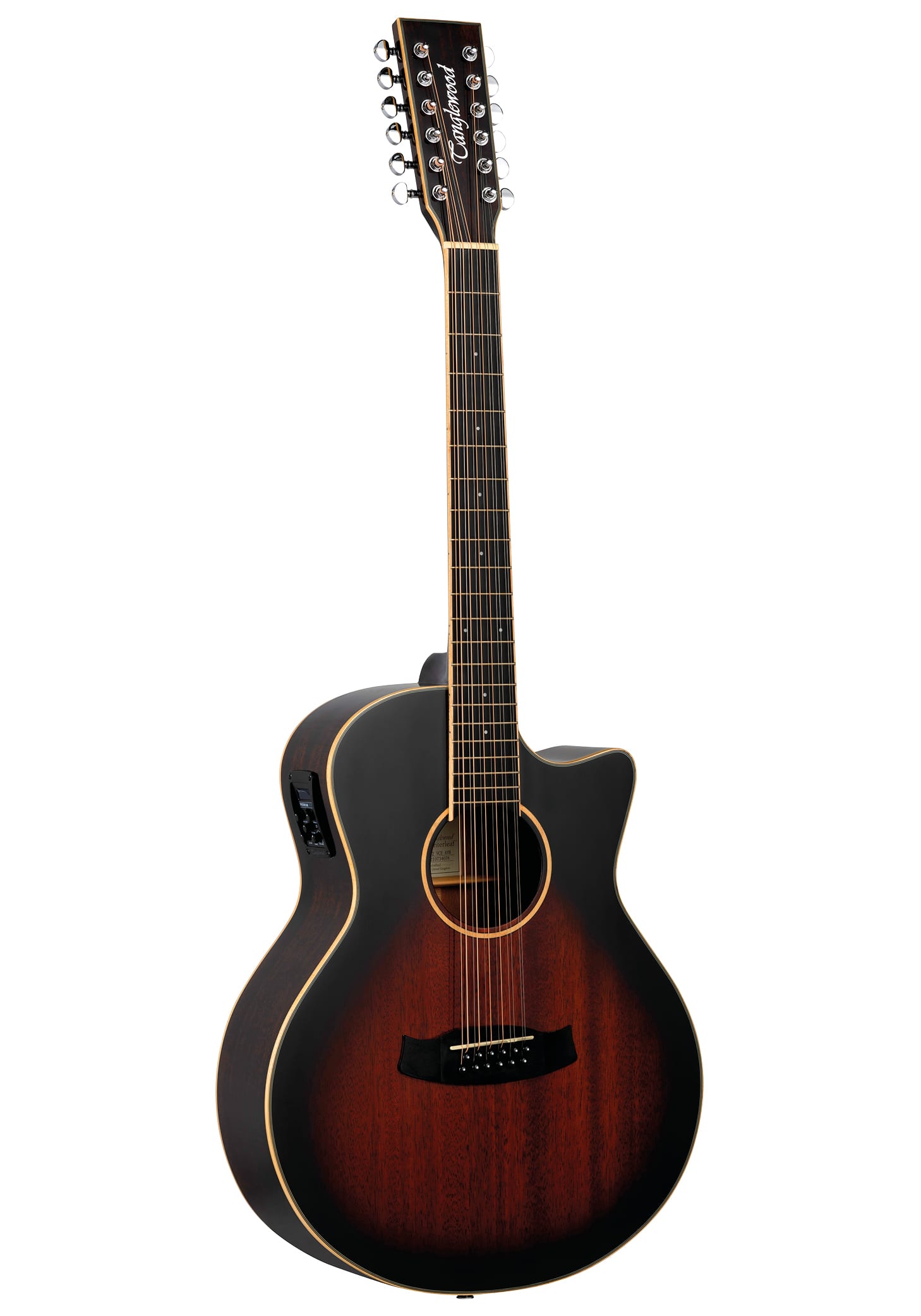 12-strängad Orchestra stålsträngad gitarr med lock i solid mahogny och mahogny sidor och bakstycke. Det ger en varm och resonant ton och ett rikt och balanserat ljud som passar många olika spelstilar och musikgenrer. Inbyggd pickup system Tanglewood Premium Plus EQ som gör det enkelt att forma sitt ljud. Autumn Vintage Burst högglansfinish.